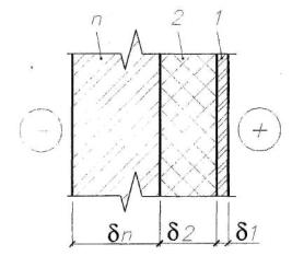 где: F1 F2, .... Fn - площади отдельных участков конструкции, м2; R1,R2,...,Rn - термические сопротивления отдельных участков конструкции, (м2·°С)/Вт. Далее ограждающая конструкция плоскостями, перпендикулярными направлению теплового потока, разделяется на слои, имеющие различные термические сопротивления. Величина Rб вычисляется при этом по формуле (4.4). Приведенное сопротивление теплопередаче ограждающей конструкции находится по формуле: