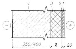Стена из керамического кирпича, утепленная изнутри, с защитным слоем из известково-песчаного раствора