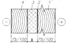 где Z0 - продолжительность периода влагонакопления, сут., т.е. периода с отрицательными температурами; А = 1000 - переводной коэффициент; γω - плотность материала изоляции; δω - толщина изоляции; Δωav - предельно допустимое приращение расчетного массового отношения влаги в материале, %;