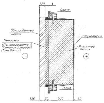 Слоистая кладка из керамзитобетона и керамического кирпича