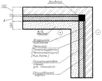 компактности для жилых зданий 0,25 -для зданий 16-ти этажей и выше; 0,29-для зданий от 10 до 15-ти этажей включительно; 0,32 - для зданий от 6 до 9-ти этажей включительно; 0,36 - для 5-этажных зданий; 0,43 - для 4-этажных зданий; 0,61; 0,54; 0,46 - для двух-, трех- и четырехэтажных блокированных и секционных домов, соответственно; 0,9 - для двух- и одноэтажных домов с мансардой; 1,1 -для одноэтажных домов. Конструктивные решения наружных стен энергоэффективных зданий, применяемые при строительстве жилых и общественных зданий можно разделить на 3 группы: 1) однослойные; 2) двухслойные; 3) трехслойные. Однослойные наружные стены выполняются из ячеистобетонных блоков. Как правило, стены из ячеистобетонных блоков проектируют самонесущими с поэтажным опиранием на элементы перекрытия с обязательной защитой от внешних атмосферных воздействий путем нанесения штукатурки, облицовки и т.д. Передача механических усилий в таких конструкциях осуществляется через железобетонные колонны. Двухслойные наружные стены содержат несущий и теплоизоляционный слои. При этом утеплитель может быть расположен как снаружи, так и изнутри. В начале реализации программы энергосбережения в Самарской области в основном применялось внутреннее утепление. В качестве теплоизоляционного материала использовались пенополистирол, пенополиуретан и плиты из штапельного стекловолокна "URSA". При использовании пенополистирола и плит "URSA" со стороны помещения утеплители защищались гипсокартоном или штукатуркой. Для защиты утеплителей от увлажнения и накопления влаги со стороны помещений устанавливалась пароизоляция в виде полиэтиленовой пленки. Однако, при дальнейшей эксплуатации зданий выявилось много дефектов, связанных с нарушением воздухообмена в помещениях, появлением темных пятен, плесени и грибков на внутренних поверхностях наружных стен. Одна из причин такого явления - наличие воздушной прослойки между утеплителем и несущей конструкцией от чего невозможно избавиться при существующей технологии производства работ. При применении в качестве теплоизоляционного материала напыляемого пенополиуретана определённой марки в соответствии с ТСН 12-305 одновременно решались четыре задачи: обеспечение адгезии, незначительного слоя утеплителя, пароизоляции и однородности теплоизоляционного слоя. Непрерывность пароизоляционного слоя обеспечивалась природой материала и технологией в полном соответствии с п. 5.10 СП 23-101 «Проектирование тепловой защиты зданий». Такой метод теплоизоляции показал положительный результат, что подтвердили инструментальные исследования, проведённые через 7 лет эксплуатации зданий. В практике строительства нашли применение два варианта фасадных систем: 1) система с наружным штукатурным слоем; 2) система с вентилируемым воздушным зазором. При первом варианте исполнения фасадных систем в качестве утеплителей в основном используются плиты из пенополистирола. Утеплитель от внешних атмосферных воздействий защищается базовым клеевым слоем, армированной стеклосеткой и декоративным слоем. При этом в качестве крепёжных элементов рекомендуется применять дюбели, выполненные из полиамида с оксидированным или нержавеющим сердечником. Учитывая, что расположение утеплителя снаружи несущей части стены вызывает снижение её долговечности за счёт скапливания у наруж