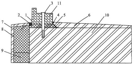 1 - монтажная пена (полиуретановая); 2 - уплотнительная саморасширяющаяся лента ПСУЛ; 3 - рамный дюбель; 4 - герметик; 5 - пароизоляционная бутил каучуковая уплотнительная лента; 6 - штукатурный слой; 7 - фасадная система; 8 - минплита; 9 - пенополистирол/пеноизол/пенополиуретан/мин.вата; 10 - керамический кирпич; 11- профиль. Рис. Е.17 Узел бокового примыкания оконного блока к проему в стене, с отделкой внутреннего откоса штукатурным раствором.