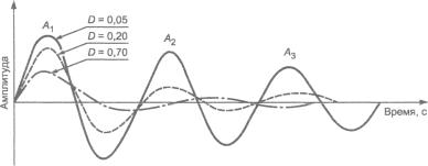 (Сo = 2 Коэффициент демпфирования в качестве отношения к критической величине равен C/Co. В переходном процессе свободных колебаний подрессоренных масс характер синусоидального графика вертикального перемещения массы зависит от величины демпфирования (см. рисунок 5). Частота может быть определена путем измерения промежутка времени, за который происходит условленное число циклов колебаний.
