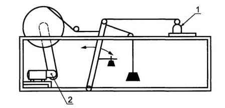 На рисунке Г.1 изображено необходимое для таких испытаний устройство, состоящее из кулачка с приводом для двигателя; толкатель кулачка связан тросом с небольшой тележкой, установленной на направляющих. Кулачок и число оборотов двигателя рассчитаны таким образом, чтобы давать требуемое ускорение при приросте ускорения, указанном в 7.6.2.2; ход кулачка рассчитан с превышением максимально допустимого перемещения ремня, при котором срабатывает втягивающее устройство.
