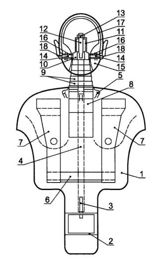 Е.4.1 Устройство состоит из двух одинаковых поглощающих энергию устройств, смонтированных параллельно, за исключением удерживающих систем, когда используют четыре устройства для поглощения энергии с номинальной массой 800 кг. В случае необходимости используют дополнительный поглотитель энергии при увеличении номинальной массы на каждые 200 кг. Каждое устройство для поглощения энергии состоит из: