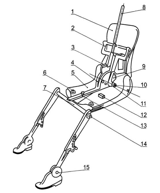 Рисунок Е.1 - Тележка, сиденье и приспособление для крепления ремня