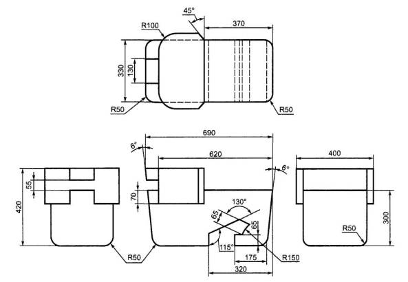 Е.4.2 Размеры различных частей этого поглощающего устройства приведены на рисунках Е.2-Е.4