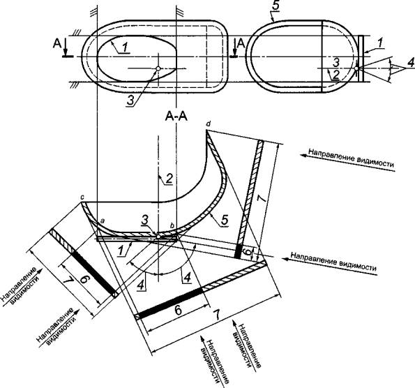 Д.1.2.1 Углы геометрической видимости должны проверяться в соответствии с 2.10 настоящего стандарта. Значения измеренных углов должны быть такими, чтобы соблюдались специальные требования, предъявляемые к каждому огню, с учетом допускаемого отклонения +3°, предусмотренного в 5.3 настоящего стандарта в отношении установки устройств освещения и световой сигнализации.