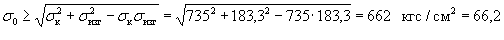 При совместном воздействии внешних изгибающих поперечных нагрузок и внутреннего давления суммарное напряжение σ0 в стенке трубы определяется по энергетической теории прочности: