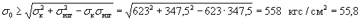 f = 10,9 см, σизг = 623 кгс/см2, σк = 156 кгс/см2, σ0 = 561 кгс/см2 = 56,1 МПа, K = 300/56,1 = 5,35.