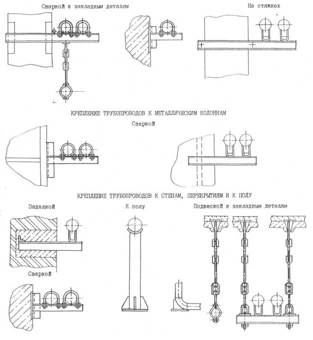 ОСНОВНЫЕ СХЕМЫ КОНСТРУКТИВНЫХ ИСПОЛНЕНИЙ КРЕПЛЕНИЙ К СТРОИТЕЛЬНЫМ КОНСТРУКЦИЯМ КРЕПЛЕНИЕ ТРУБОПРОВОДОВ К ЖЕЛЕЗОБЕТОННЫМ КОЛОННАМ