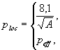 где A - площадь области локального контакта, м2, A > 0,1 м2; ploc - давление разрушающегося льда в пределах области локального контакта, МПа. 5.3.2 Нормативное значение локального давления ploc зависит от расположения области контакта и должно определяться на основе натурных данных. При отсутствии данных рекомендуется: а) при расположении области контакта в зоне действия ровного ледяного поля или консолидированной части тороса вычислять давление ploc по формуле API RP 2N [3]: