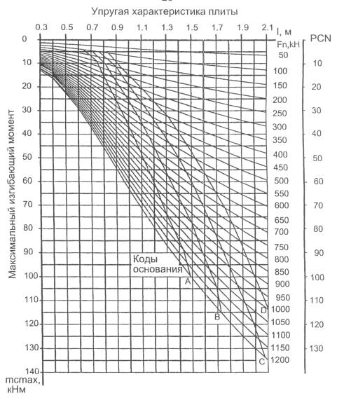 Рис. 1.3. Номограмма для определения нагрузки на опору и числа PCN жесткого аэродромного покрытия