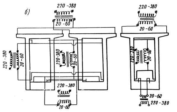 1. Для электропрогрева клееных стыков рекомендуется применять трансформаторы с низким напряжением и большой силой тока во вторичной обмотке. Желательно, чтобы трансформаторы допускали регулировку напряжения во вторичной обмотке (на выходе трансформатора).