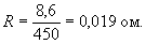где R - сопротивление подводящих кабелей, ом;