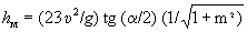 где u - максимальная на вертикали скорость стоковых течений; a - угол подхода стокового потока к сооружению; g - ускорение силы тяжести; т - крутизна откоса сооружения.