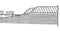 1.6. В нижних бьефах гидроузлов, в результате перекрытия реки плотиной, образуется дефицит наносов, распространяющийся вниз по течению реки (на расположенное ниже водохранилище) иногда на десятки километров. Он способен вызвать на участке проектируемого берегового укрепления необратимый процесс понижения дна водохранилища и этим повлиять на устойчивость сооружения. Примером может служить размыв искусственного песчаного контрфорса в основании оползневого склона - горы Увек (Саратов). Сначала размыв происходил за счет стоковых течений. После постройки в 1966 г. гребенки из 11 подводных бун размыв контрфорса прекратился. Началось накопление наносов между бумами. В 1967 г. перекрытием Волги Саратовским гидроузлом (у Балакова) размыв возобновился из-за уменьшения расхода наносов. В связи с этим был разработан проект укрепления межбунных пространств каменной наброской.