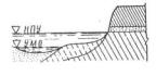 1.7. С образованием водохранилищ участие стоковых течений в руслоформирующем и рельефообразующем процессе берегов потеряло свое преобладающее значение, по вместо них вступили в действие новые силы, обусловленные повышением уровня воды на 10-20 м, а на некоторых водохранилищах и более. В контакт с рекой вступают породы, ранее не подвергавшиеся постоянному или даже временному (при высокой воде) намоканию, ухудшающему прочностные и деформационные свойства пород, а следовательно, снижающему устойчивость склона долины. Особенно губительны для устойчивости берега разрушения пород в полосе амплитуды режимных колебаний уровня водохранилища, достигающей 2-7 м.