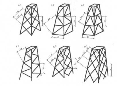 Рисунок 7.3 - Сечения сквозных стержней Зависимость для промежуточных значений k и λ, величина β определяется при помощи линейной интерполяции. Таблица 7.5