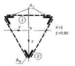 На рисунке 7.3 показаны два типа сечений сквозных стержней с тавровым и различными сечениями второй ветви и приведены соответствующие значения коэффициентов k и ζ,.