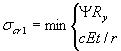 где t - толщина оболочки; r - радиус срединной поверхности; коэффициент ψ определяется по формуле (СНиП II-23-85*): коэффициент «с» находится по следующей таблице: