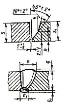 Примечание - Угол раскрытия свариваемых кромок в местах положения шва должен быть не менее 43°. |