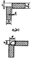 для углового шва 3.2.4 Сварочные работы должны осуществляться под руководством инженерно-технического лица, имеющего опыт в области сварочных работ и имеющего удостоверение на право производства работ по сварке. 3.2.5 Ручная электродуговая сварка должна производиться электросварщиками, имеющими удостоверения, выданные им в соответствии с действующими в настоящий момент Правилами аттестации сварщиков. Автоматическая и полуавтоматическая сварка должна производиться сварщиками, прошедшими обучение и получившими об этом соответствующие удостоверения. Сварщики должны на месте работы пройти испытания в условиях, тождественных с теми, в которых будет выполняться сварка конструкций. Для сварки при отрицательной температуре сварщик должен пройти испытание при предусмотренной технологическим процессом отрицательной температуре. Сварщик, сдавший испытание, может быть допущен к сварке при температуре на 10°С ниже температуры испытания. 3.2.6 При использовании металлопроката, не подвергнутого консервации, проплавляемые поверхности и прилегающие к ним зоны металла шириной не менее 20 мм, а также кромки листов в местах примыкания выводных планок перед сборкой, должны быть перед сборкой очищены до чистого металла с удалением конденсационной влаги. При наличии на конструкциях ржавчины, грязи и т.п. непосредственно перед сваркой очистка должна быть повторена. Продукты очистки не должны оставаться в зазорах между собранными под сварку деталями. 3.2.7 Сварка стальных конструкций должна производиться после проверки правильности их сборки. Выполнение каждого валика многослойных швов сварных соединений допускается после очистки предыдущего валика, а также прихваток от шлака и брызг наплавленного металла. Участки слоев шва с порами, раковинами и трещинами должны быть удалены до наложения следующего слоя. 3.2.8 При двусторонней сварке швов стыковых сварных соединений, а также угловых и тавровых сварных соединений с разделанными кромками со сквозным проплавлением необходимо перед выполнением шва с обратной стороны очистить корень шва механическим способом до чистого бездефектного металла. В процессе выполнения автоматической и полуавтоматической сварки при вынужденном перерыве в работе сварку разрешается возобновить после очистки концевого участка шва длиной 50 мм и кратера от шлака - этот участок и кратер следует полностью перекрыть швом. 3.2.9 Свариваемые детали стальных конструкций и рабочее место сварщика должны быть защищены от дождя, снега, сильного ветра и сквозняков. 3.2.10 Придание угловым швам вогнутого профиля и плавного перехода к основному металлу, а также выполнение стыковых швов без усиления, если это предусматривается чертежами КМ, должны, как правило, осуществляться подбором режимов сварки и соответствующим расположением свариваемых деталей. Механическая обработка швов, для придания им нужной формы, производится способами, не оставляющими на их поверхности зарубок, надрезов и других дефектов. 3.2.11 Начало и конец шва стыкового сварного соединения, а также выполняемого автоматом углового и таврового сварного соединения должны выводиться за пределы свариваемых деталей на заходные и выводные планки, удаляемые после окончания сварки газовой разделительной резкой. Места установки планок после газовой срезки долж