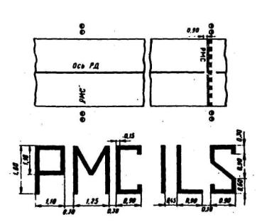 3.1.4. Параллельные ИВПП маркируются латинскими буквами "L" (левая) и "R"(правая), которые располагаются между знаками порога и цифровыми знаками ПМПУ согласно рис.3.3. Форма цифр и букв и их размеры приведены на рис. 3.4. 3.1.5. На участках пересечения взлетно-посадочных полос маркировка главной ИВПП сохраняется, а вспомогательной прерывается. 3.1.6. Зону приземления маркируют парами прямоугольных симметричных полос, расположенных параллельно оси ИВПП. 3.1.7. Фиксированное расстояние на ИВПП аэродромов обозначают парой параллельных прямоугольных полос, расположенных симметрично оси ИВПП. Они совмещаются со второй парой параллельных полос зоны приземления.