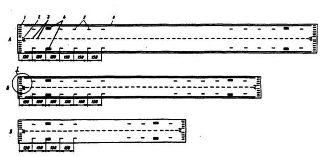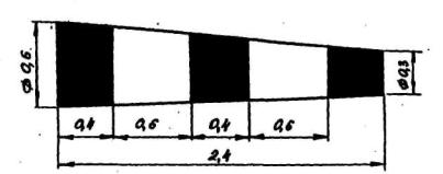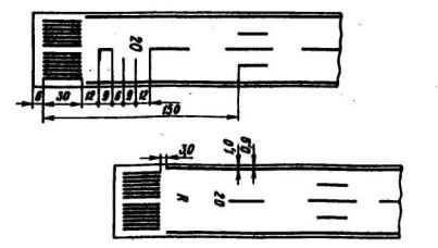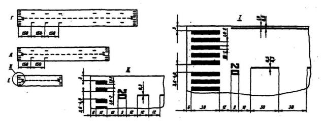 Рис 3.7. Схема маркировки МС: Примечание. Числитель - размеры для аэродромов класса А, Б, В. Знаменатель - размеры для аэродромов класса Г и Д; а = 5-7,5 м