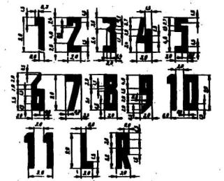 Рис. 3.4. Размеры и форма цифр и букв на ИВПП
