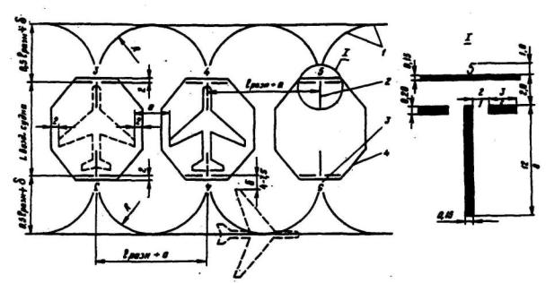 Рис. 3.8. Схема маркировки перрона: 3.1.18. Номер места стоянки наносится на расстоянии 2,0 м впереди Т-образного знака. Размеры и форма цифр приведены на рис. 3.9. 3.1.19. Контур зоны обслуживания ВС наносится сплошной линией шириной 0,15 м в виде восьмиугольника, размеры которого должны соответствовать габаритам эксплуатируемых ВС, а стороны должны наноситься не ближе 2,0 м от крайних габаритных точек ВС При маркировке зоны обслуживания групповых стоянок ВС 3-го и 4-го класса маркировочную линию восьмиугольника наносят на расстоянии 1,5 м от крайних габаритных точек ВС.