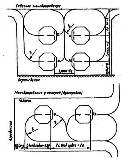 где В - ширина очищаемого элемента летного поля, м; Вп - ширина захвата отряда уборочных машин, м; Ширина захвата отряда машин Вп, определяемая по формуле 5.7, должна быть кратна ширине очищаемых элементов летного поля (ИВПП, МРД, РД) первой очереди очистки с тем, чтобы после выполнения минимального количества гонов не оставалось огрехов на покрытии. 5.2.15. Снег, убираемый с покрытий плужно-щеточно-пиевматическими машинами, собирается в виде валов, которые рекомендуется убирать роторными снегоочистителями с аналогичной скоростью. В этом случае указанные уборочные машины рекомендуется включать в отряд с учетом их параметров: длины, безопасной дистанции и рабочей скорости. Выбор машин, перебрасывающих обвалованный снег за пределы очищаемых элементов летного поля, рекомендуется производить с учетом интенсивности накопления снега от проходов плужнo-щеточно-пневматических машин, которая определяется по формуле П = Вп·V·h·γ, (5.9) где Вп - эксплуатационная ширина захвата отряда уборочных машин, м; V - скорость отряда уборочных машин, м/ч; h - толщина убираемого снега, м; γ - плотность снега, т/м3. Эксплуатационная производительность выбираемого роторного снегоочистителя (Про) должна быть в лучшем случае равной или, по крайней мере, кратной интенсивности накопления обвалованного снега. 5.2.16. Для очистки аэродромных покрытий по определенным выбранным технологическим схемам и конкретным маршрутам требуется учитывать среднее время маневрирования машин отряда tм. Средневзвешенную величину tм рекомендуется определять как сумму времени на все развороты и повороты согласно расчетной схеме установленных маршрутов технологии уборочных работ, деленную на сумму всех поворотов и разворотов. 5.2.17. Затраты времени на один разворот машины отряда рекомендуется определять по формуле