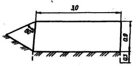 Рис. 3.14. Пограничный знак 3.2.6. Пограничные знаки устанавливают на ГВПП на расстоянии 100 м друг от друга и 1,0 м за боковыми границами; на РД и МС - на расстоянии 20 м друг от друга и 1,0 м за их боковым и границами. 3.2.7. Места выруливания ВС с ГВПП на РД и с РД на перрон обозначают сдвоенными пограничными знаками. Они устанавливаются с каждой стороны РД с интервалом 2,0 м один от другого. 3.2.8. На временных аэродромах класса Е в качестве пограничных знаков могут применяться флажки белого или красного цвета. Флажки устанавливают на расстоянии 50 м друг от друга. Размер флажка 0,5´0,4 м. 3.2.9. Посадочный Т-образный знак обозначает место приземления ВС и включает комплект изб полотнищ: трех - белого и трех - красного цветов. Размеры сигнального полотнища для аэродромов всех классов равны 5´1 м. Т-образный посадочный знак выкладывают из двух сигнальных полотнищ на ЛП в 3,0 м от края ГВПП с левой стороны посадки ВС и на расстоянии от ее начала: 200 м для аэродромов класса В; 150 м - класса Г; 100 м - класса Д; 50 м - класса Е. (Измененная редакция, Изм. № 2). 3.2.10. Для предотвращения заноса сигнальных полотнищ снегом их установку производят на облегченном каркасе, высота которого должна быть на 0,1 - 0,2 м больше расчетной толщины снежного покрова. С целью обеспечения лучшей видимости сигнальных полотнищ каркас устанавливают с наклоном 6 - 8° к направлению посадки ВС. 3.2.11. Знаки зоны приземления (рис. 3.15) представляют собой трехгранные призмы длиной 3,0 м. В сечении знак имеет форму равностороннего треугольника со стороной 0,9 м. Знак изготавливают из деревянного каркаса и обивают мягким материалом. 3.2.12. Поверхность знака зоны приземления, видимую со стороны посадки, окрашивают на летний период в белый цвет, на зимний период - в черный. Противоположную сторону знака окрашивают в красный (оранжевый) цвет. (Измененная редакция, Изм. № 2). 3.2.13. Знаки зоны приземления устанавливают по обеим сторонам ГВПП в 5,0 м от ее боковых границ, в 50,0 м перед посадочным знаком "Т" и в 150 м за ним. 3.2.14. Угловой знак (рис. 3.16) предназначен для обозначения и закрепления границ ГВПП и выполняется из тощего бетона, щебня или гравия толщиной 0,1 - 0,12 м на песчаной подушке. 3.2.15. Угловой знак устанавливают по углам ГВПП, в центре углового знака устанавливают пограничный знак (конус). Поверхность углового знака окрашивается в белый цвет, а на аэродромах с песчаным и супесчаным грунтом - в оранжевый цвет.