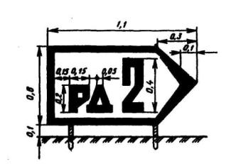 Рис. 3.20. Знак подхода 3.2.22. Рулежный маркировочный знак (рис. 3.21) указывает направление и номер рулежной дорожки и представляет собой щит размером 1,1´0,6 м, окрашенный с обеих сторон в желтый цвет и окаймленный полосой оранжево-красного цвета шириной 0,03 - 0,1 м. В центре щита с обеих сторон наносят буквы "РД" и цифру оранжево-красным цветом.