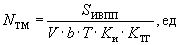 где Vn - емкость цистерны разливающего средства, м3; в - эксплуатационная ширина захвата обрабатывающей машины (устройства) при выполнении работ для конкретных условий, м; впер - ширина перекрытия смежных проходов обрабатывающих машин (устройств), м; В - ширина обрабатываемого участка, м; Г - количество гонов машин (устройств) для обработки поверхности. Отряд машин для обработки покрытий составами подбирается таким образом, чтобы величина перекрытия была бы минимальной; количество средств в отряде вычисляется по формуле