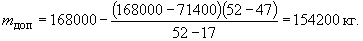 Линейной интерполяцией по формуле (3) определяем допустимую массу самолета при PCN = ACN = 47.