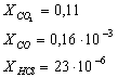 где г) по предельно допустимому содержанию каждого из газообразных токсичных продуктов горения:
