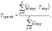 где: Тсрв.т/э - средневзвешенный тариф на тепловую энергию, руб./Гкал; Qт/э у - количество тепловой энергии, подлежащей поставке у-ой теплоснабжающей организацией, Гкал; Тт/э у - тариф на тепловую энергию для у-ой теплоснабжающей организации, руб./Гкал; f - количество теплоснабжающих организаций.