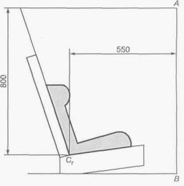 Ф.2 Для устройств, обращенных назад, глубина боковых выступов должна быть не менее 90 мм от средней линии поверхности спинки. Эти боковые выступы должны начинаться от горизонтальной плоскости, проходящей через точку А, и доходить до верха спинки сиденья. Начиная с точки, расположенной на 90 мм ниже верхней точки спинки сиденья, глубина боковых выступов может постепенно уменьшаться.