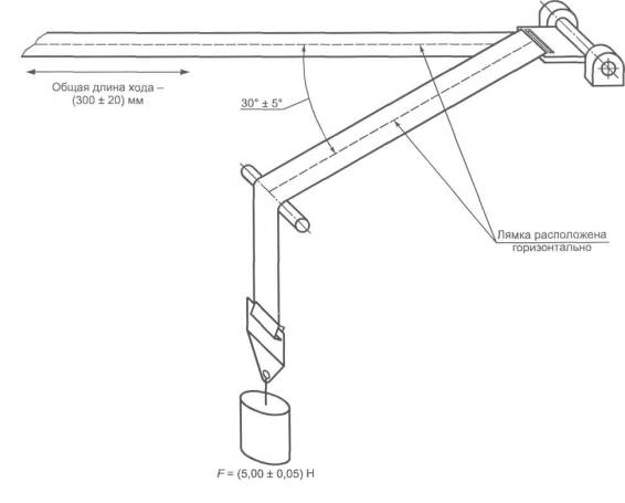 4.1.2.3 Вытягивают лямку на всю длину с бобины втягивающего устройства и перематывают в обратном направлении с усилием (4 ± 3) Н между втягивающим устройством и хомутом. До проведения динамического испытания следует застопорить бобину. Проводят динамическое испытание на удар.