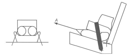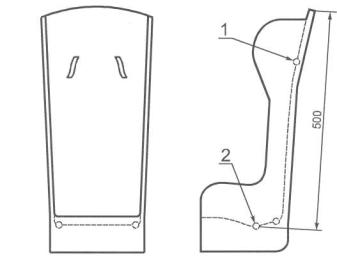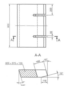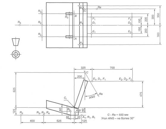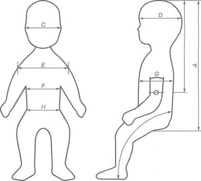Устройства с изменяющимся наклоном устанавливают как можно ближе к вертикальному положению. Помещают в устройство самый маленький манекен в соответствии с инструкцией предприятия-изготовителя. Отмечают точку А на спинке на том же уровне, на котором находится плечо этого манекена, на расстоянии 2 см в сторону центра от внешнего края руки. Все внутренние поверхности, расположенные над горизонтальной плоскостью, проходящей через точку А, должны быть покрыты специальным энергопоглощающим материалом, испытанным в соответствии с приложением Т. Этот материал должен покрывать внутренние поверхности спинки и боковые выступы, в т.ч. внутренние края (закругленные зоны) боковых выступов. Энергопоглощающий материал может быть выполнен заодно с детским сиденьем. В случае удерживающих устройств для детской люльки нижний предел зоны, где должен использоваться материал, соответствующий приложению Т, должен включать в себя все зоны спереди от обращенного назад плеча меньшего по размеру манекена, при этом данные величины измеряют, когда манекен находится в детской люльке, а люлька установлена на испытательном стенде.