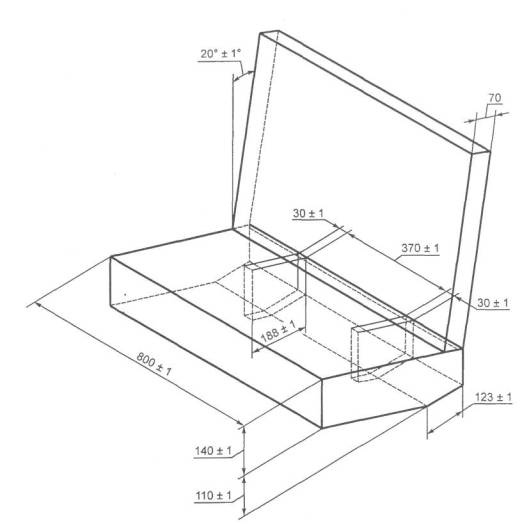 8.1.3.1.2.2 Для испытания детского удерживающего устройства, обращенного назад и предназначенного для использования на переднем сиденье, роль приборной доски транспортного средства выполняет жесткая планка, установленная на тележке таким образом, чтобы вся энергия поглощалась устройством.