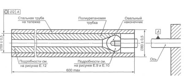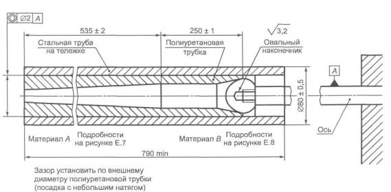 8.1.3.1.1.3 Замедление тележки обеспечивают с помощью устройства, описанного в приложении Е, или с помощью любого другого устройства, дающего эквивалентные результаты. Рабочие характеристики этого устройства должны соответствовать 8.1.3.4 приложения Ж.