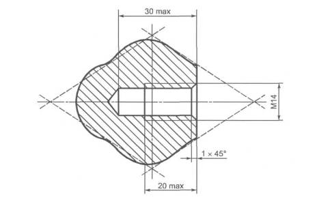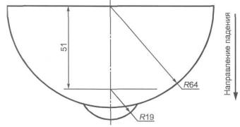Т.1.1 Модель головы представляет собой твердое деревянное полушарие с дополнительным сферическим сегментом, как показано на рисунке Т.1. Модель головы должна быть сконструирована так, чтобы ее можно было сбрасывать в направлении оси, показанной на рисунке Т.1; конструкцией должна быть предусмотрена возможность установки акселерометра для измерения ускорения в направлении падения.