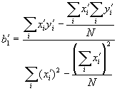 Коэффициенты функции линейной регрессии b'1 и b'0 вычисляют по формулам: