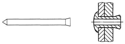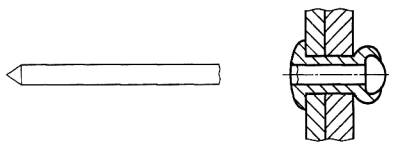 Рисунок 10 - Забивной штифт 2.3 Типы стержней «слепых» заклепок2.3.1 открытый конец (open end): Корпус заклепки со сквозным отверстием, который может использоваться с любым типом сердечника (рисунок 11). Примечание - Типы сердечников см. в 2.2.1.1 - 2.2.1.6.