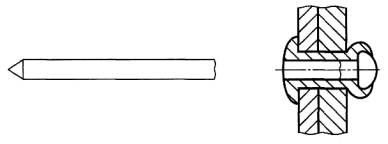 Рисунок 6 - Сердечник с отрывающейся головкой 2.2.1.4 неразрывающийся вытяжной сердечник(non-break pull mandrel): После установки заклепки сердечник не разрушается (рисунок 7). Примечание - Хвостовик сердечника может быть впоследствии обработан заподлицо с головкой заклепки.