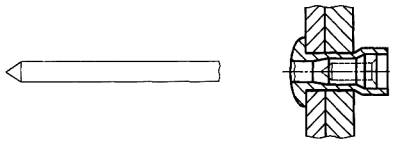 Рисунок 9 - Ступенчатый вытяжной сердечник с заданной точкой разрыва 2.2.2 забивной штифт (drive pin): Установленный в корпусе заклепки выступающий над головкой заклепки элемент, который после вставления заклепки в отверстия скрепляемых деталей запрессовывается в тело заклепки заподлицо с верхней поверхностью головки заклепки, раздвигая собой конец заклепки и формируя таким образом «слепую» головку (рисунок 10).