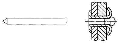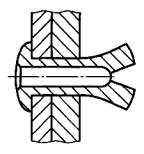Рисунок 15 - Разделяющийся конец 2.3.5 разрезной стержень (slotted shank): Корпус заклепки, имеющий продольные разрезы в средней части стержня заклепки между головой и концом заклепки (рисунок 16). Примечание - Этот тип корпуса может использоваться с сердечниками типов 2.2.1.1 - 2.2.1.5.
