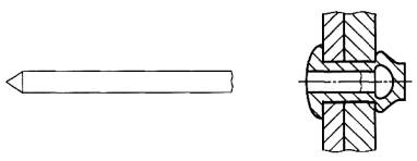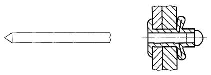 Рисунок 4 - Сердечник, протягиваемый насквозь 2.2.1.2 разрывающийся вытяжной сердечник (break pull mandrel): После установки заклепки сердечник разрывается около соединения его головки и хвостовика, при этом головка и небольшая часть хвостовика сердечника могут оставаться в корпусе заклепки (рисунок 5).